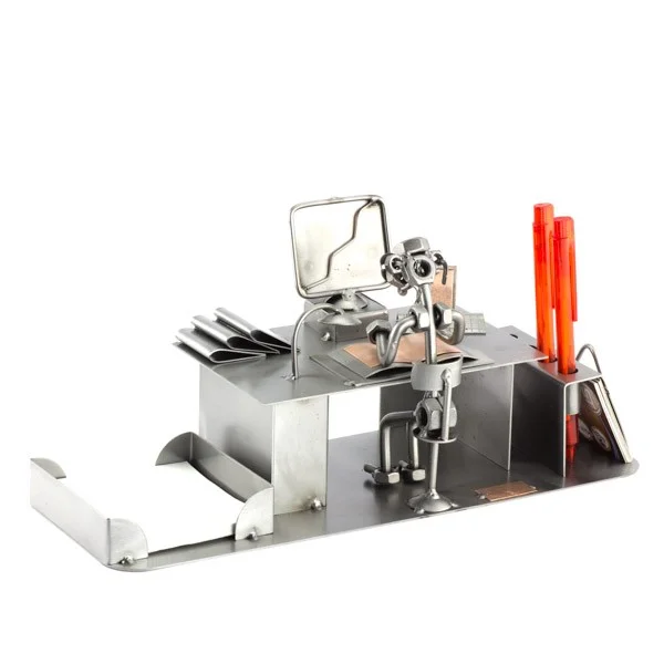 De boekhouder werkt de administratie weer bij. Met papierbak / pennenstandaard en visitekaarthouder. Deze mooie beroepenbeeldjes zullen zeker mooi staan, waar u ze ook neer zet. De ontvanger zal dit cadeau zeker waarderen.