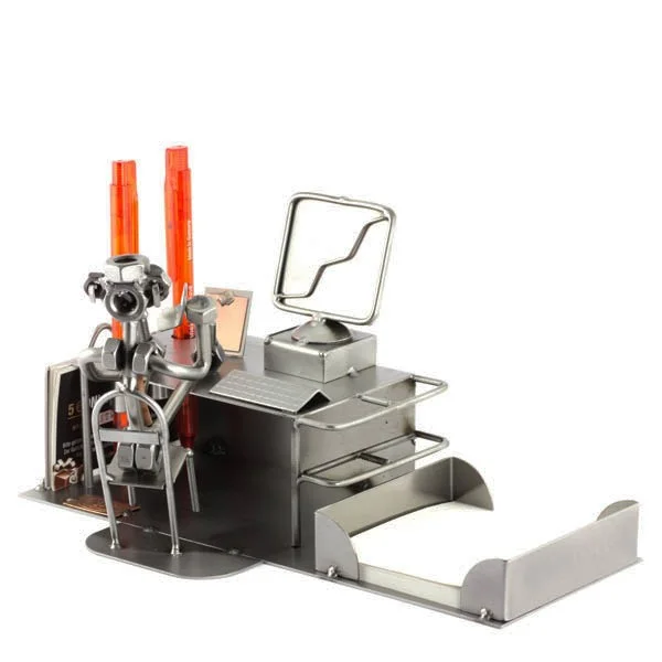 De metalen bouten en moeren beeldjes, ook wel moerenmannetjes genoemd, zijn gemaakt in originele Steelman24 kwaliteit, uitvoerig en zorgvuldig handgemaakt. Als gevolg van deze afwerking is elk afzonderlijk metalenbeeldje uniek en voldoet aan de hoogste kwaliteitsnormen. Hierdoor kunnen de beeldjes soms iets afwijken van de productfoto. Deze kleine stukjes van kunst die bestaan uit schroeven, moeren, bouten, metaal en koper worden geproduceerd met een hoog niveau van vakmanschap en een oog voor detail, in een intensief en ingewikkeld productieproces. Op hetzelfde moment zijn ze niet alleen gekenmerkt door hun buitengewone creativiteit, maar ook door unieke aandacht voor detail.
