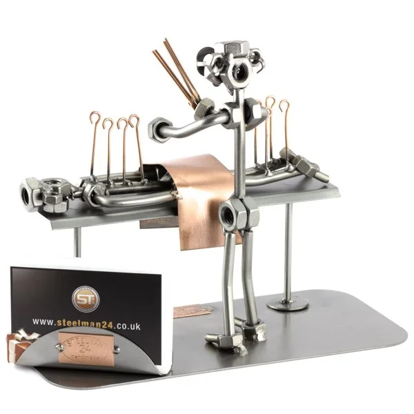 De metalen beeldjes zijn gemaakt in originele Steelman kwaliteit, uitvoerig en zorgvuldig handgemaakt. Als gevolg van deze afwerking is elk afzonderlijk metalenbeeldje uniek en voldoet aan de hoogste kwaliteitsnormen. Deze kleine stukjes van kunst die bestaan uit schroeven, moeren, metaal en koper worden geproduceerd met een hoog niveau van vakmanschap en een oog voor detail, in een intensief en ingewikkeld productieproces. Op hetzelfde moment zijn ze niet alleen gekenmerkt door hun buitengewone creativiteit, maar ook door unieke aandacht voor detail.