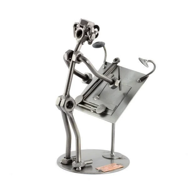 De metalen bouten en moeren beeldjes, ook wel moerenmannetjes genoemd, zijn gemaakt in originele Steelman24 kwaliteit, uitvoerig en zorgvuldig handgemaakt. Als gevolg van deze afwerking is elk afzonderlijk metalenbeeldje uniek en voldoet aan de hoogste kwaliteitsnormen. Hierdoor kunnen de beeldjes soms iets afwijken van de productfoto. Deze kleine stukjes van kunst die bestaan uit schroeven, moeren, bouten, metaal en koper worden geproduceerd met een hoog niveau van vakmanschap en een oog voor detail, in een intensief en ingewikkeld productieproces. Op hetzelfde moment zijn ze niet alleen gekenmerkt door hun buitengewone creativiteit, maar ook door unieke aandacht voor detail.