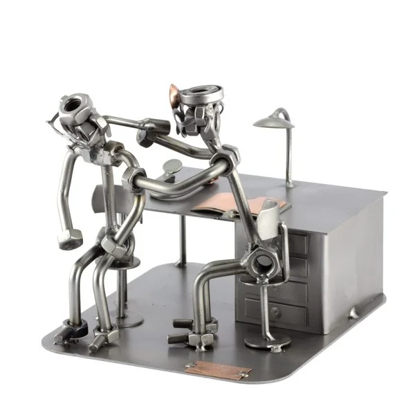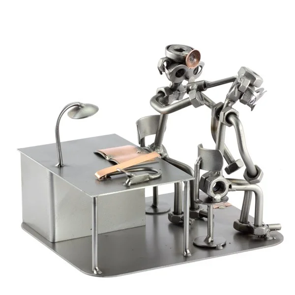 De metalen bouten en moeren beeldjes, ook wel moerenmannetjes genoemd, zijn gemaakt in originele Steelman24 kwaliteit, uitvoerig en zorgvuldig handgemaakt. Als gevolg van deze afwerking is elk afzonderlijk metalenbeeldje uniek en voldoet aan de hoogste kwaliteitsnormen. Hierdoor kunnen de beeldjes soms iets afwijken van de productfoto. Deze kleine stukjes van kunst die bestaan uit schroeven, moeren, bouten, metaal en koper worden geproduceerd met een hoog niveau van vakmanschap en een oog voor detail, in een intensief en ingewikkeld productieproces. Op hetzelfde moment zijn ze niet alleen gekenmerkt door hun buitengewone creativiteit, maar ook door unieke aandacht voor detail.
