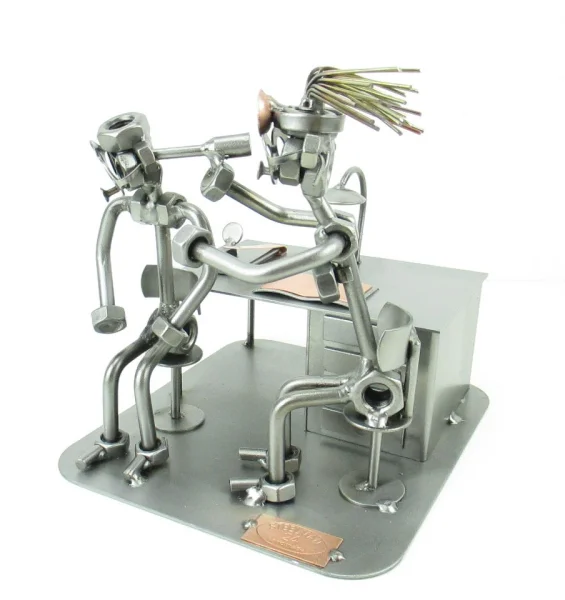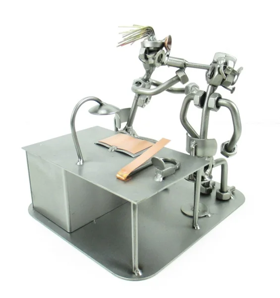 De metalen bouten en moeren beeldjes, ook wel moerenmannetjes genoemd, zijn gemaakt in originele Steelman24 kwaliteit, uitvoerig en zorgvuldig handgemaakt. Als gevolg van deze afwerking is elk afzonderlijk metalenbeeldje uniek en voldoet aan de hoogste kwaliteitsnormen. Hierdoor kunnen de beeldjes soms iets afwijken van de productfoto. Deze kleine stukjes van kunst die bestaan uit schroeven, moeren, bouten, metaal en koper worden geproduceerd met een hoog niveau van vakmanschap en een oog voor detail, in een intensief en ingewikkeld productieproces. Op hetzelfde moment zijn ze niet alleen gekenmerkt door hun buitengewone creativiteit, maar ook door unieke aandacht voor detail.