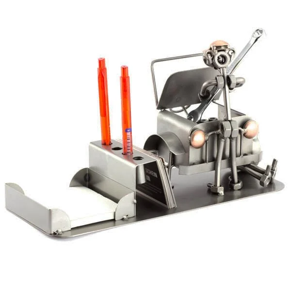 Automonteur met papierbak / pennenstandaard en visitekaarthouder. Deze mooie beroepenbeeldjes zullen zeker mooi staan, waar u ze ook neer zet. De ontvanger zal dit cadeau zeker waarderen.