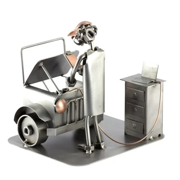 De metalen bouten en moeren beeldjes, ook wel moerenmannetjes genoemd, zijn gemaakt in originele Steelman24 kwaliteit, uitvoerig en zorgvuldig handgemaakt. Als gevolg van deze afwerking is elk afzonderlijk metalenbeeldje uniek en voldoet aan de hoogste kwaliteitsnormen. Hierdoor kunnen de beeldjes soms iets afwijken van de productfoto. Deze kleine stukjes van kunst die bestaan uit schroeven, moeren, bouten, metaal en koper worden geproduceerd met een hoog niveau van vakmanschap en een oog voor detail, in een intensief en ingewikkeld productieproces. Op hetzelfde moment zijn ze niet alleen gekenmerkt door hun buitengewone creativiteit, maar ook door unieke aandacht voor detail.