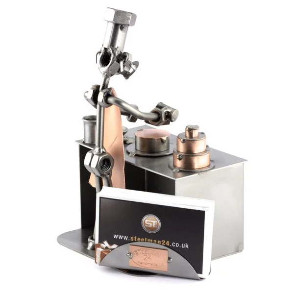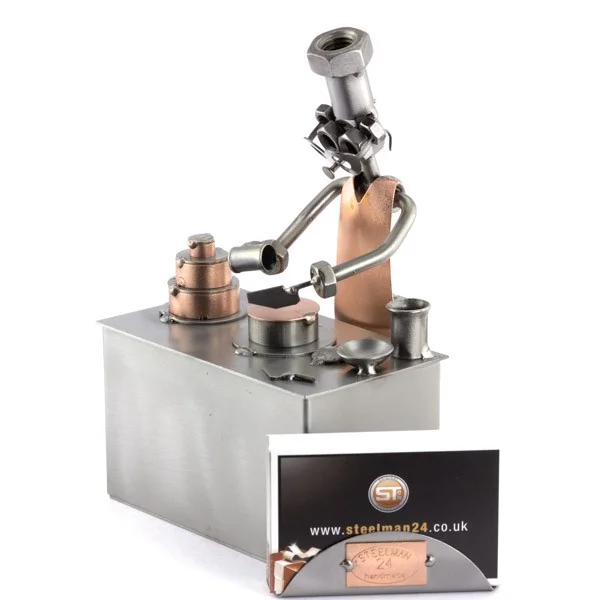 De metalen bouten en moeren beeldjes, ook wel moerenmannetjes genoemd, zijn gemaakt in originele Steelman24 kwaliteit, uitvoerig en zorgvuldig handgemaakt. Als gevolg van deze afwerking is elk afzonderlijk metalenbeeldje uniek en voldoet aan de hoogste kwaliteitsnormen. Hierdoor kunnen de beeldjes soms iets afwijken van de productfoto. Deze kleine stukjes van kunst die bestaan uit schroeven, moeren, bouten, metaal en koper worden geproduceerd met een hoog niveau van vakmanschap en een oog voor detail, in een intensief en ingewikkeld productieproces. Op hetzelfde moment zijn ze niet alleen gekenmerkt door hun buitengewone creativiteit, maar ook door unieke aandacht voor detail.