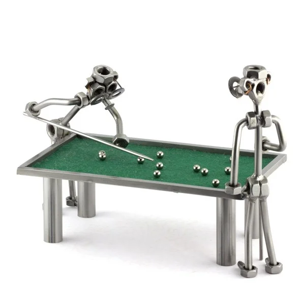 Twee biljartspelers aan het biljarten. Deze mooie sportbeeldjes zullen zeker mooi staan, waar u ze ook neer zet.