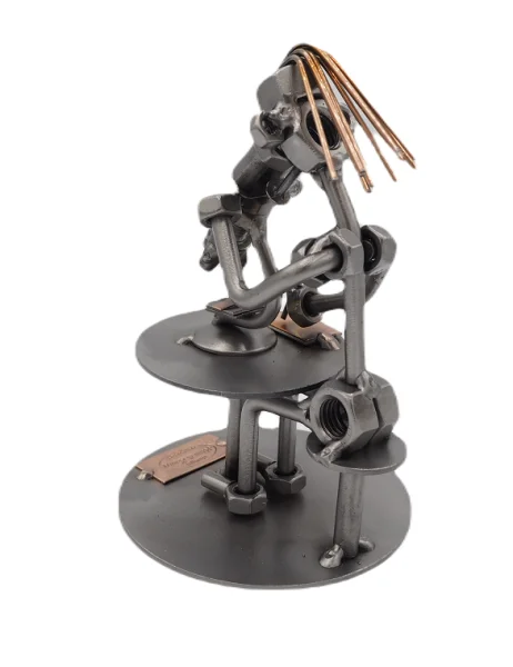 De metalen bouten en moeren beeldjes, ook wel moerenmannetjes genoemd, zijn gemaakt in originele Hinz en Kunst kwaliteit, uitvoerig en zorgvuldig handgemaakt. Als gevolg van deze afwerking is elk afzonderlijk metalenbeeldje uniek en voldoet aan de hoogste kwaliteitsnormen. Hierdoor kunnen de beeldjes soms iets afwijken van de productfoto. Deze kleine stukjes van kunst die bestaan uit schroeven, moeren, bouten, metaal en koper worden geproduceerd met een hoog niveau van vakmanschap en een oog voor detail, in een intensief en ingewikkeld productieproces. Op hetzelfde moment zijn ze niet alleen gekenmerkt door hun buitengewone creativiteit, maar ook door unieke aandacht voor detail.