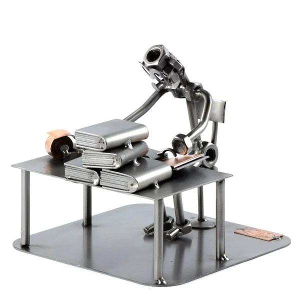 Het metalen beeldje laat een hardwerkende boekhouder zien die druk aan het werk is zodat de belastingaangifte gedaan kan worden. De moerenmannetjes worden vaak weg geven bij een jubileum of wanneer iemand met pensioen gaat. Deze mooie en originele beeldjes worden zeer gewaardeerd als cadeau. Ook voor een penningmeester zal dit een zeer geslaagd cadeau zijn bij zijn of haar afscheid.