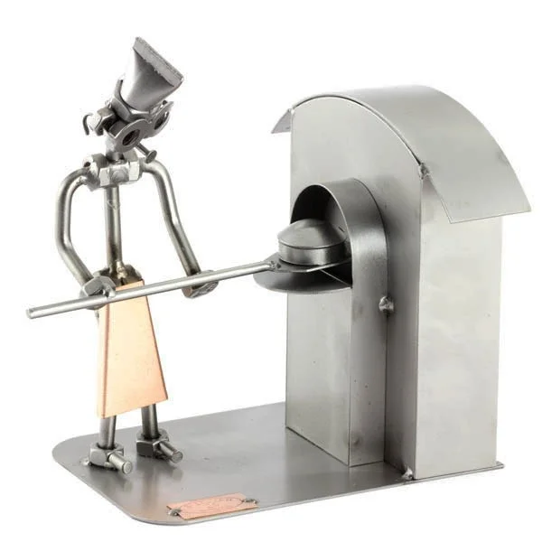 De metalen bouten en moeren beeldjes, ook wel moerenmannetjes genoemd, zijn gemaakt in originele Steelman24 kwaliteit, uitvoerig en zorgvuldig handgemaakt. Als gevolg van deze afwerking is elk afzonderlijk metalenbeeldje uniek en voldoet aan de hoogste kwaliteitsnormen. Hierdoor kunnen de beeldjes soms iets afwijken van de productfoto. Deze kleine stukjes van kunst die bestaan uit schroeven, moeren, bouten, metaal en koper worden geproduceerd met een hoog niveau van vakmanschap en een oog voor detail, in een intensief en ingewikkeld productieproces. Op hetzelfde moment zijn ze niet alleen gekenmerkt door hun buitengewone creativiteit, maar ook door unieke aandacht voor detail.