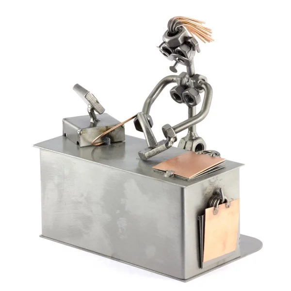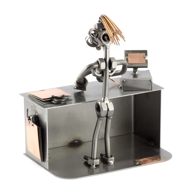 De metalen bouten en moeren beeldjes, ook wel moerenmannetjes genoemd, zijn gemaakt in originele Steelman24 kwaliteit, uitvoerig en zorgvuldig handgemaakt. Als gevolg van deze afwerking is elk afzonderlijk metalenbeeldje uniek en voldoet aan de hoogste kwaliteitsnormen. Hierdoor kunnen de beeldjes soms iets afwijken van de productfoto. Deze kleine stukjes van kunst die bestaan uit schroeven, moeren, bouten, metaal en koper worden geproduceerd met een hoog niveau van vakmanschap en een oog voor detail, in een intensief en ingewikkeld productieproces. Op hetzelfde moment zijn ze niet alleen gekenmerkt door hun buitengewone creativiteit, maar ook door unieke aandacht voor detail.