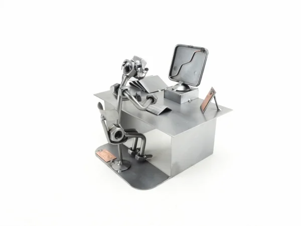 De metalen bouten en moeren beeldjes, ook wel moerenmannetjes genoemd, zijn gemaakt in originele Steelman24 kwaliteit, uitvoerig en zorgvuldig handgemaakt. Als gevolg van deze afwerking is elk afzonderlijk metalenbeeldje uniek en voldoet aan de hoogste kwaliteitsnormen. Hierdoor kunnen de beeldjes soms iets afwijken van de productfoto. Deze kleine stukjes van kunst die bestaan uit schroeven, moeren, bouten, metaal en koper worden geproduceerd met een hoog niveau van vakmanschap en een oog voor detail, in een intensief en ingewikkeld productieproces. Op hetzelfde moment zijn ze niet alleen gekenmerkt door hun buitengewone creativiteit, maar ook door unieke aandacht voor detail.