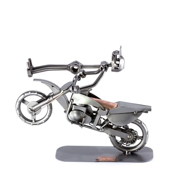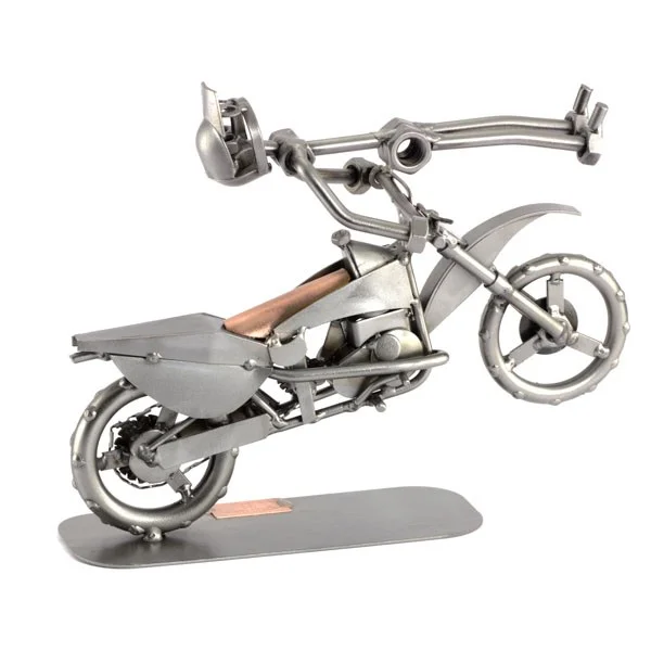 De stuntman is een mooie stunt aan het uitvoeren op zijn crossmotor. Deze mooie motor beeldjes zullen zeker mooi staan, waar u ze ook neer zet. De ontvanger zal dit cadeau zeker waarderen.