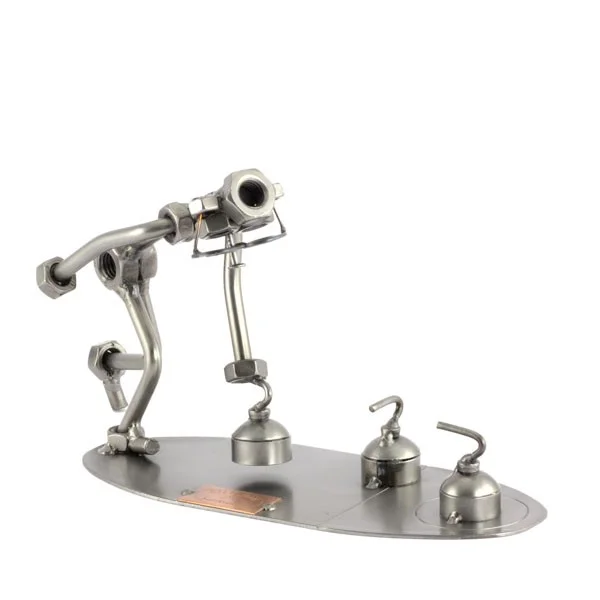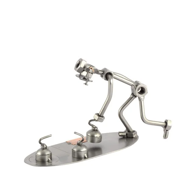 De metalen bouten en moeren beeldjes, ook wel moerenmannetjes genoemd, zijn gemaakt in originele Steelman24 kwaliteit, uitvoerig en zorgvuldig handgemaakt. Als gevolg van deze afwerking is elk afzonderlijk metalenbeeldje uniek en voldoet aan de hoogste kwaliteitsnormen. Deze kleine stukjes van kunst die bestaan uit schroeven, moeren, bouten, metaal en koper worden geproduceerd met een hoog niveau van vakmanschap en een oog voor detail, in een intensief en ingewikkeld productieproces. Op hetzelfde moment zijn ze niet alleen gekenmerkt door hun buitengewone creativiteit, maar ook door unieke aandacht voor detail.