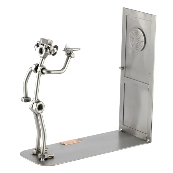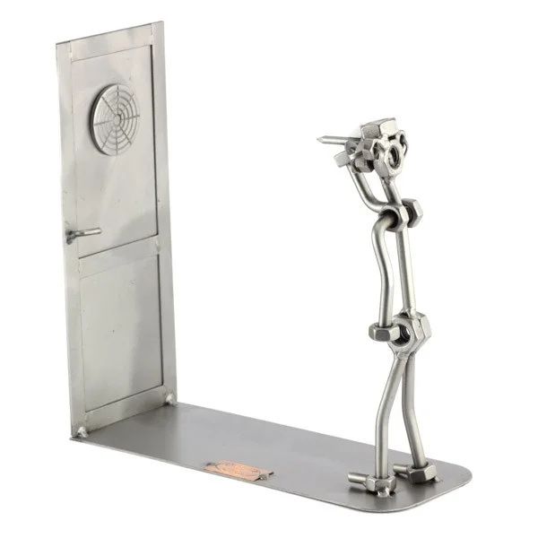 De metalen bouten en moeren beeldjes, ook wel moerenmannetjes genoemd, zijn gemaakt in originele Steelman kwaliteit, uitvoerig en zorgvuldig handgemaakt. Als gevolg van deze afwerking is elk afzonderlijk metalenbeeldje uniek en voldoet aan de hoogste kwaliteitsnormen. Deze kleine stukjes van kunst die bestaan uit schroeven, moeren, bouten, metaal en koper worden geproduceerd met een hoog niveau van vakmanschap en een oog voor detail, in een intensief en ingewikkeld productieproces. Op hetzelfde moment zijn ze niet alleen gekenmerkt door hun buitengewone creativiteit, maar ook door unieke aandacht voor detail.