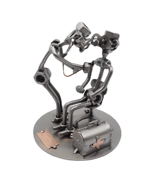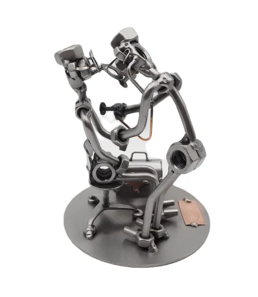 De metalen bouten en moeren beeldjes, ook wel moerenmannetjes genoemd, zijn gemaakt in originele Hinz en Kunst kwaliteit, uitvoerig en zorgvuldig handgemaakt. Als gevolg van deze afwerking is elk afzonderlijk metalenbeeldje uniek en voldoet aan de hoogste kwaliteitsnormen. Hierdoor kunnen de beeldjes soms iets afwijken van de productfoto. Deze kleine stukjes van kunst die bestaan uit schroeven, moeren, bouten, metaal en koper worden geproduceerd met een hoog niveau van vakmanschap en een oog voor detail, in een intensief en ingewikkeld productieproces. Op hetzelfde moment zijn ze niet alleen gekenmerkt door hun buitengewone creativiteit, maar ook door unieke aandacht voor detail.