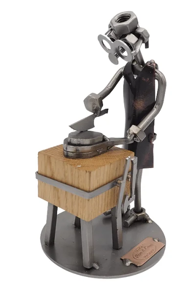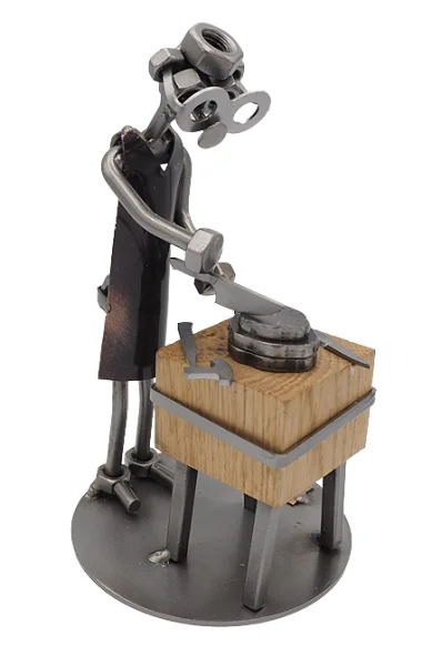 Onze metalen bouten en moeren beeldjes, ook wel moerenmannetjes genoemd, zijn vervaardigd in originele Hinz en Kunst-kwaliteit. Elk beeldje is uitvoerig en zorgvuldig met de hand gemaakt, wat betekent dat elk exemplaar uniek is en voldoet aan de hoogste kwaliteitsnormen. Door het intensieve productieproces kan het voorkomen dat de beeldjes iets afwijken van de productfoto’s, maar dit draagt bij aan hun unieke karakter. Deze kleine kunstwerken, gemaakt van schroeven, moeren, bouten, metaal en koper, zijn een prachtig voorbeeld van vakmanschap met een scherp oog voor detail.