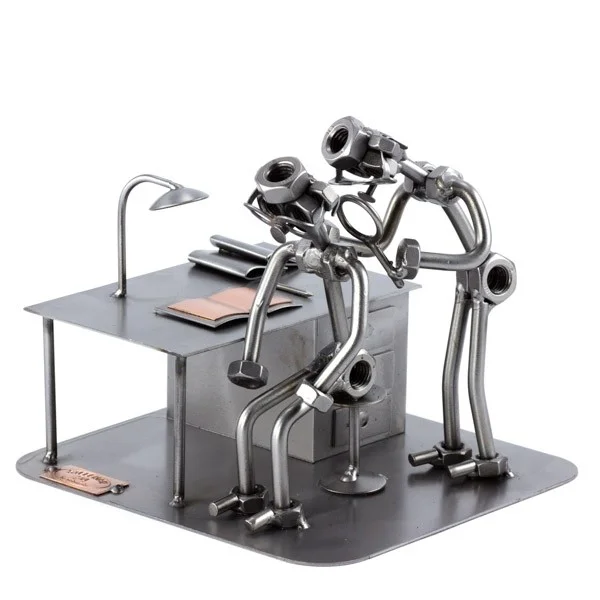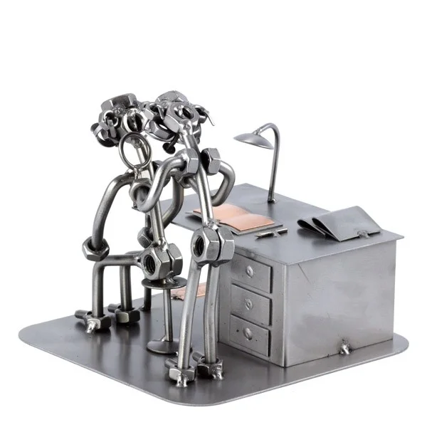 De metalen bouten en moeren beeldjes, ook wel moerenmannetjes genoemd, zijn gemaakt in originele Steelman24 kwaliteit, uitvoerig en zorgvuldig handgemaakt. Als gevolg van deze afwerking is elk afzonderlijk metalenbeeldje uniek en voldoet aan de hoogste kwaliteitsnormen. Hierdoor kunnen de beeldjes soms iets afwijken van de productfoto. Deze kleine stukjes van kunst die bestaan uit schroeven, moeren, bouten, metaal en koper worden geproduceerd met een hoog niveau van vakmanschap en een oog voor detail, in een intensief en ingewikkeld productieproces. Op hetzelfde moment zijn ze niet alleen gekenmerkt door hun buitengewone creativiteit, maar ook door unieke aandacht voor detail.