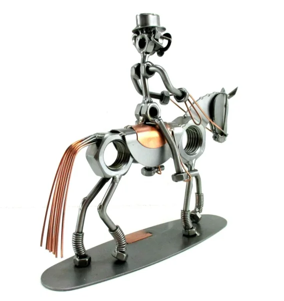 De metalen bouten en moeren beeldjes, ook wel moerenmannetjes genoemd, zijn gemaakt in originele Hinz & Kunst kwaliteit, uitvoerig en zorgvuldig handgemaakt. Als gevolg van deze afwerking is elk afzonderlijk metalenbeeldje uniek en voldoet aan de hoogste kwaliteitsnormen. Deze kleine stukjes van kunst die bestaan uit schroeven, moeren, bouten, metaal en koper worden geproduceerd met een hoog niveau van vakmanschap en een oog voor detail, in een intensief en ingewikkeld productieproces. Op hetzelfde moment zijn ze niet alleen gekenmerkt door hun buitengewone creativiteit, maar ook door unieke aandacht voor detail.