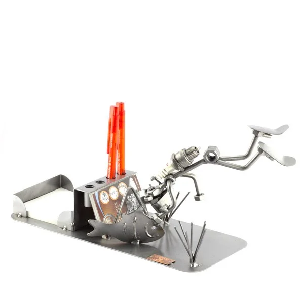 De metalen bouten en moeren beeldjes, ook wel moerenmannetjes genoemd, zijn gemaakt in originele Steelman24 kwaliteit, uitvoerig en zorgvuldig handgemaakt. Als gevolg van deze afwerking is elk afzonderlijk metalenbeeldje uniek en voldoet aan de hoogste kwaliteitsnormen. Deze kleine stukjes van kunst die bestaan uit schroeven, moeren, bouten, metaal en koper worden geproduceerd met een hoog niveau van vakmanschap en een oog voor detail, in een intensief en ingewikkeld productieproces. Op hetzelfde moment zijn ze niet alleen gekenmerkt door hun buitengewone creativiteit, maar ook door unieke aandacht voor detail.