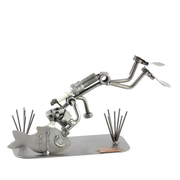De metalen bouten en moeren beeldjes, ook wel moerenmannetjes genoemd, zijn gemaakt in originele Steelman24 kwaliteit, uitvoerig en zorgvuldig handgemaakt. Als gevolg van deze afwerking is elk afzonderlijk metalenbeeldje uniek en voldoet aan de hoogste kwaliteitsnormen. Deze kleine stukjes van kunst die bestaan uit schroeven, moeren, bouten, metaal en koper worden geproduceerd met een hoog niveau van vakmanschap en een oog voor detail, in een intensief en ingewikkeld productieproces. Op hetzelfde moment zijn ze niet alleen gekenmerkt door hun buitengewone creativiteit, maar ook door unieke aandacht voor detail.