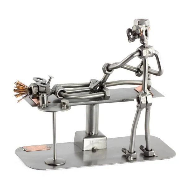 De metalen bouten en moeren beeldjes, ook wel moerenmannetjes genoemd, zijn gemaakt in originele Steelman24 kwaliteit, uitvoerig en zorgvuldig handgemaakt. Als gevolg van deze afwerking is elk afzonderlijk metalenbeeldje uniek en voldoet aan de hoogste kwaliteitsnormen. Hierdoor kunnen de beeldjes soms iets afwijken van de productfoto. Deze kleine stukjes van kunst die bestaan uit schroeven, moeren, bouten, metaal en koper worden geproduceerd met een hoog niveau van vakmanschap en een oog voor detail, in een intensief en ingewikkeld productieproces. Op hetzelfde moment zijn ze niet alleen gekenmerkt door hun buitengewone creativiteit, maar ook door unieke aandacht voor detail.