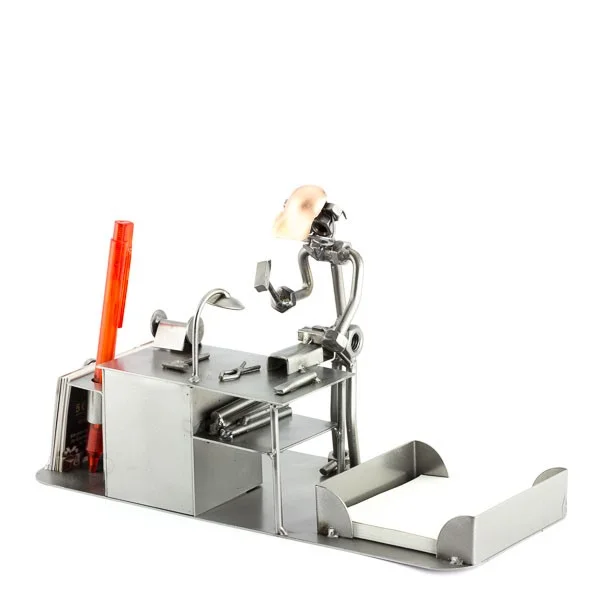 De metalen bouten en moeren beeldjes, ook wel moerenmannetjes genoemd, zijn gemaakt in originele Steelman24 kwaliteit, uitvoerig en zorgvuldig handgemaakt. Als gevolg van deze afwerking is elk afzonderlijk metalenbeeldje uniek en voldoet aan de hoogste kwaliteitsnormen. Hierdoor kunnen de beeldjes soms iets afwijken van de productfoto. Deze kleine stukjes van kunst die bestaan uit schroeven, moeren, bouten, metaal en koper worden geproduceerd met een hoog niveau van vakmanschap en een oog voor detail, in een intensief en ingewikkeld productieproces. Op hetzelfde moment zijn ze niet alleen gekenmerkt door hun buitengewone creativiteit, maar ook door unieke aandacht voor detail.