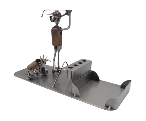 De metalen bouten en moeren beeldjes, ook wel moerenmannetjes genoemd, zijn gemaakt in originele Steelman kwaliteit, uitvoerig en zorgvuldig handgemaakt. Als gevolg van deze afwerking is elk afzonderlijk metalenbeeldje uniek en voldoet aan de hoogste kwaliteitsnormen. Deze kleine stukjes van kunst die bestaan uit schroeven, moeren, bouten, metaal en koper worden geproduceerd met een hoog niveau van vakmanschap en een oog voor detail, in een intensief en ingewikkeld productieproces. Op hetzelfde moment zijn ze niet alleen gekenmerkt door hun buitengewone creativiteit, maar ook door unieke aandacht voor detail.