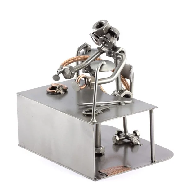 De metalen bouten en moeren beeldjes, ook wel moerenmannetjes genoemd, zijn gemaakt in originele Steelman24 kwaliteit, uitvoerig en zorgvuldig handgemaakt. Als gevolg van deze afwerking is elk afzonderlijk metalenbeeldje uniek en voldoet aan de hoogste kwaliteitsnormen. Hierdoor kunnen de beeldjes soms iets afwijken van de productfoto. Deze kleine stukjes van kunst die bestaan uit schroeven, moeren, bouten, metaal en koper worden geproduceerd met een hoog niveau van vakmanschap en een oog voor detail, in een intensief en ingewikkeld productieproces. Op hetzelfde moment zijn ze niet alleen gekenmerkt door hun buitengewone creativiteit, maar ook door unieke aandacht voor detail.
