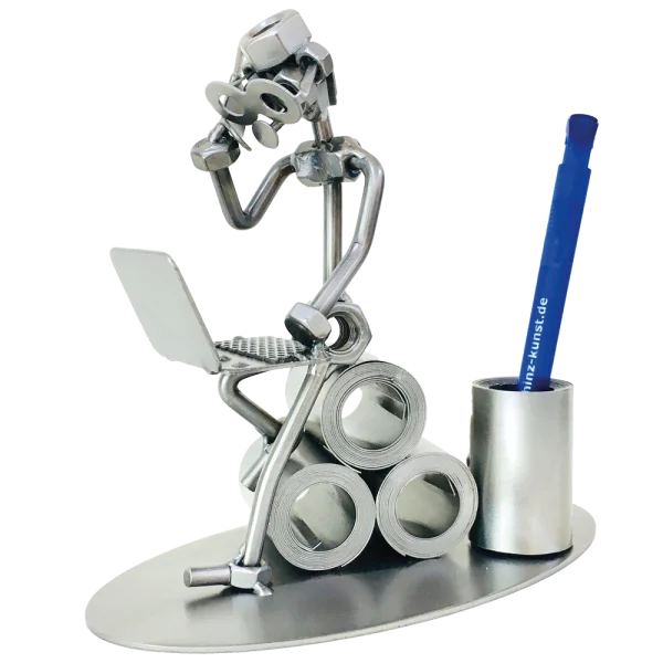 De metalen bouten en moeren beeldjes, ook wel moerenmannetjes genoemd, zijn gemaakt in originele Steelman kwaliteit, uitvoerig en zorgvuldig handgemaakt. Als gevolg van deze afwerking is elk afzonderlijk metalenbeeldje uniek en voldoet aan de hoogste kwaliteitsnormen. Deze kleine stukjes van kunst die bestaan uit schroeven, moeren, bouten, metaal en koper worden geproduceerd met een hoog niveau van vakmanschap en een oog voor detail, in een intensief en ingewikkeld productieproces. Op hetzelfde moment zijn ze niet alleen gekenmerkt door hun buitengewone creativiteit, maar ook door unieke aandacht voor detail.