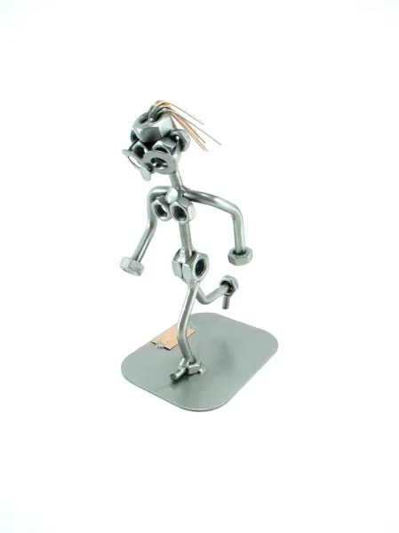 De metalen bouten en moeren beeldjes, ook wel moerenmannetjes genoemd, zijn gemaakt in originele Steelman kwaliteit, uitvoerig en zorgvuldig handgemaakt. Als gevolg van deze afwerking is elk afzonderlijk metalenbeeldje uniek en voldoet aan de hoogste kwaliteitsnormen. Deze kleine stukjes van kunst die bestaan uit schroeven, moeren, bouten, metaal en koper worden geproduceerd met een hoog niveau van vakmanschap en een oog voor detail, in een intensief en ingewikkeld productieproces. Op hetzelfde moment zijn ze niet alleen gekenmerkt door hun buitengewone creativiteit, maar ook door unieke aandacht voor detail.