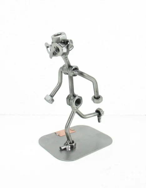 De metalen bouten en moeren beeldjes, ook wel moerenmannetjes genoemd, zijn gemaakt in originele Steelman kwaliteit, uitvoerig en zorgvuldig handgemaakt. Als gevolg van deze afwerking is elk afzonderlijk metalenbeeldje uniek en voldoet aan de hoogste kwaliteitsnormen. Deze kleine stukjes van kunst die bestaan uit schroeven, moeren, bouten, metaal en koper worden geproduceerd met een hoog niveau van vakmanschap en een oog voor detail, in een intensief en ingewikkeld productieproces. Op hetzelfde moment zijn ze niet alleen gekenmerkt door hun buitengewone creativiteit, maar ook door unieke aandacht voor detail.