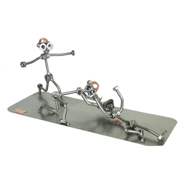 De metalen bouten en moeren beeldjes, ook wel moerenmannetjes genoemd, zijn gemaakt in originele Steelman kwaliteit, uitvoerig en zorgvuldig handgemaakt. Als gevolg van deze afwerking is elk afzonderlijk metalenbeeldje uniek en voldoet aan de hoogste kwaliteitsnormen. Deze kleine stukjes van kunst die bestaan uit schroeven, moeren, bouten, metaal en koper worden geproduceerd met een hoog niveau van vakmanschap en een oog voor detail, in een intensief en ingewikkeld productieproces. Op hetzelfde moment zijn ze niet alleen gekenmerkt door hun buitengewone creativiteit, maar ook door unieke aandacht voor detail.