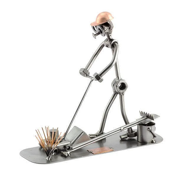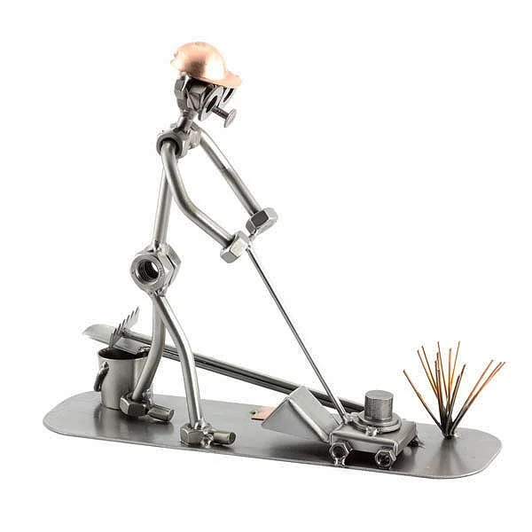 De tuinman maait het gazon weer met zijn grasmaaier. Deze mooie beroepenbeeldjes zullen zeker mooi staan, waar u ze ook neer zet. De ontvanger zal dit cadeau zeker waarderen.