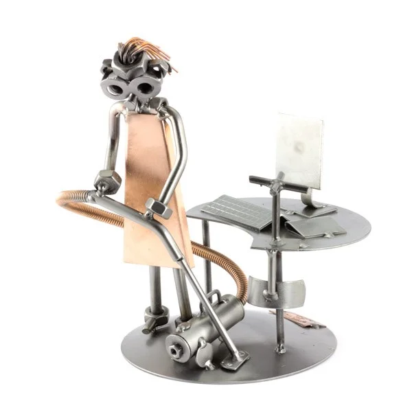 De metalen bouten en moeren beeldjes, ook wel moerenmannetjes genoemd, zijn gemaakt in originele Steelman24 kwaliteit, uitvoerig en zorgvuldig handgemaakt. Als gevolg van deze afwerking is elk afzonderlijk metalenbeeldje uniek en voldoet aan de hoogste kwaliteitsnormen. Hierdoor kunnen de beeldjes soms iets afwijken van de productfoto. Deze kleine stukjes van kunst die bestaan uit schroeven, moeren, bouten, metaal en koper worden geproduceerd met een hoog niveau van vakmanschap en een oog voor detail, in een intensief en ingewikkeld productieproces. Op hetzelfde moment zijn ze niet alleen gekenmerkt door hun buitengewone creativiteit, maar ook door unieke aandacht voor detail.