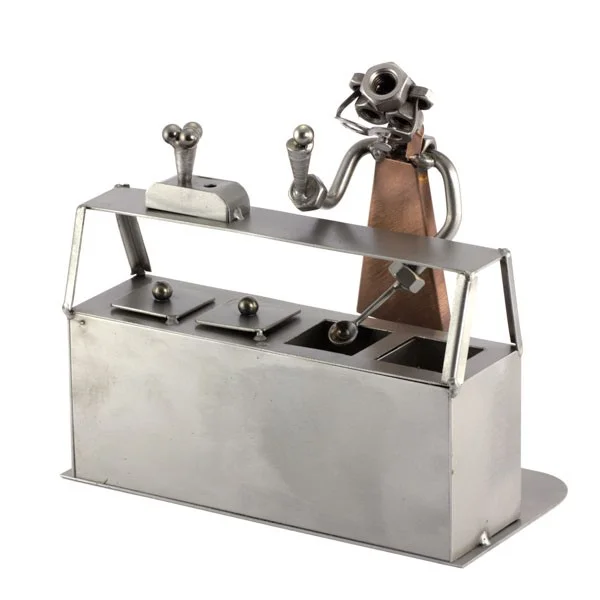 De metalen bouten en moeren beeldjes, ook wel moerenmannetjes genoemd, zijn gemaakt in originele Steelman24 kwaliteit, uitvoerig en zorgvuldig handgemaakt. Als gevolg van deze afwerking is elk afzonderlijk metalenbeeldje uniek en voldoet aan de hoogste kwaliteitsnormen. Hierdoor kunnen de beeldjes soms iets afwijken van de productfoto. Deze kleine stukjes van kunst die bestaan uit schroeven, moeren, bouten, metaal en koper worden geproduceerd met een hoog niveau van vakmanschap en een oog voor detail, in een intensief en ingewikkeld productieproces. Op hetzelfde moment zijn ze niet alleen gekenmerkt door hun buitengewone creativiteit, maar ook door unieke aandacht voor detail.