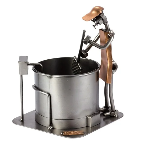 De metalen bouten en moeren beeldjes, ook wel moerenmannetjes genoemd, zijn gemaakt in originele Steelman24 kwaliteit, uitvoerig en zorgvuldig handgemaakt. Als gevolg van deze afwerking is elk afzonderlijk metalenbeeldje uniek en voldoet aan de hoogste kwaliteitsnormen. Hierdoor kunnen de beeldjes soms iets afwijken van de productfoto. Deze kleine stukjes van kunst die bestaan uit schroeven, moeren, bouten, metaal en koper worden geproduceerd met een hoog niveau van vakmanschap en een oog voor detail, in een intensief en ingewikkeld productieproces. Op hetzelfde moment zijn ze niet alleen gekenmerkt door hun buitengewone creativiteit, maar ook door unieke aandacht voor detail.