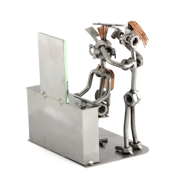 De metalen bouten en moeren beeldjes, ook wel moerenmannetjes genoemd, zijn gemaakt in originele Steelman24 kwaliteit, uitvoerig en zorgvuldig handgemaakt. Als gevolg van deze afwerking is elk afzonderlijk metalenbeeldje uniek en voldoet aan de hoogste kwaliteitsnormen. Hierdoor kunnen de beeldjes soms iets afwijken van de productfoto. Deze kleine stukjes van kunst die bestaan uit schroeven, moeren, bouten, metaal en koper worden geproduceerd met een hoog niveau van vakmanschap en een oog voor detail, in een intensief en ingewikkeld productieproces. Op hetzelfde moment zijn ze niet alleen gekenmerkt door hun buitengewone creativiteit, maar ook door unieke aandacht voor detail.