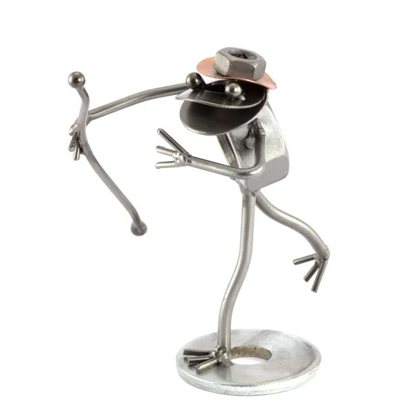 De metalen bouten en moeren beeldjes, ook wel moerenmannetjes genoemd, zijn gemaakt in originele Steelman kwaliteit, uitvoerig en zorgvuldig handgemaakt. Als gevolg van deze afwerking is elk afzonderlijk metalenbeeldje uniek en voldoet aan de hoogste kwaliteitsnormen. Deze kleine stukjes van kunst die bestaan uit schroeven, moeren, bouten, metaal en koper worden geproduceerd met een hoog niveau van vakmanschap en een oog voor detail, in een intensief en ingewikkeld productieproces. Op hetzelfde moment zijn ze niet alleen gekenmerkt door hun buitengewone creativiteit, maar ook door unieke aandacht voor detail.