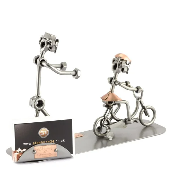 De metalen beeldjes zijn gemaakt in originele Steelman kwaliteit, uitvoerig en zorgvuldig handgemaakt. Als gevolg van deze afwerking is elk afzonderlijk metalenbeeldje uniek en voldoet aan de hoogste kwaliteitsnormen. Hierdoor kunnen de beeldjes soms iets afwijken van de productfoto. Deze kleine stukjes van kunst die bestaan uit schroeven, moeren, metaal en koper worden geproduceerd met een hoog niveau van vakmanschap en een oog voor detail, in een intensief en ingewikkeld productieproces. Op hetzelfde moment zijn ze niet alleen gekenmerkt door hun buitengewone creativiteit, maar ook door unieke aandacht voor detail.