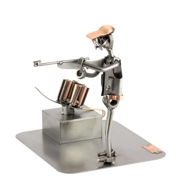 De metalen bouten en moeren beeldjes, ook wel moerenmannetjes genoemd, zijn gemaakt in originele Steelman kwaliteit, uitvoerig en zorgvuldig handgemaakt. Als gevolg van deze afwerking is elk afzonderlijk metalenbeeldje uniek en voldoet aan de hoogste kwaliteitsnormen. Deze kleine stukjes van kunst die bestaan uit schroeven, moeren, bouten, metaal en koper worden geproduceerd met een hoog niveau van vakmanschap en een oog voor detail, in een intensief en ingewikkeld productieproces. Op hetzelfde moment zijn ze niet alleen gekenmerkt door hun buitengewone creativiteit, maar ook door unieke aandacht voor detail.