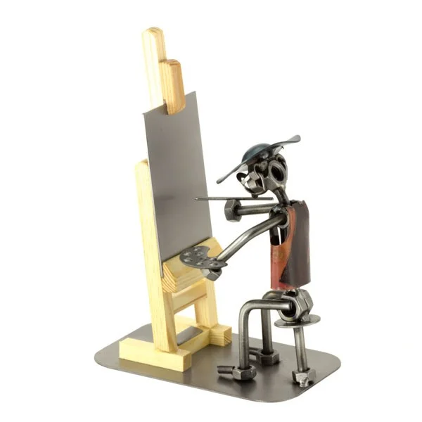 De metalen bouten en moeren beeldjes, ook wel moerenmannetjes genoemd, zijn gemaakt in originele Steelman24 kwaliteit, uitvoerig en zorgvuldig handgemaakt. Als gevolg van deze afwerking is elk afzonderlijk metalenbeeldje uniek en voldoet aan de hoogste kwaliteitsnormen. Hierdoor kunnen de beeldjes soms iets afwijken van de productfoto. Deze kleine stukjes van kunst die bestaan uit schroeven, moeren, bouten, metaal en koper worden geproduceerd met een hoog niveau van vakmanschap en een oog voor detail, in een intensief en ingewikkeld productieproces. Op hetzelfde moment zijn ze niet alleen gekenmerkt door hun buitengewone creativiteit, maar ook door unieke aandacht voor detail.Er zijn geen grenzen aan ideeën en creativiteit in de ontwikkeling van de beeldjes en objecten. Meer dan 500 verschillende creaties uit alle gebieden van het leven hebben geleid tot het maken van deze prachtige moerenmannetjes. Kan je geen cadeautje vinden? Zoek niet verder, deze unieke en originele geschenken zijn een geweldig cadeau idee - of voor een verjaardagscadeau, diploma, diplomering, geslaagd, school, universiteit, stage, kunstenaar, verf schilderijen, schilderij, pensionering, vaderdag cadeau, moederdag cadeau, relatiegeschenk, cadeautjes, afstudeercadeau, opening nieuwe zaak, cadeau kunstliefhebber, cadeau opening kunstgalerie, kunst galerie, sportprijs, afscheidscadeau, 12,5 jaar in dienst, 25 jaar in dienst, 40 jaar in dienst, persoonlijke tekst op het plaatje, behalen van diploma, jubileum cadeau, cadeau voor hem, cadeau voor je vriend, cadeau idee, kado voor hem, als een bewijs van liefde of als geschenk voor uw host - simpel gezegd, boutenbeeldjes voor bijna elke gelegenheid.