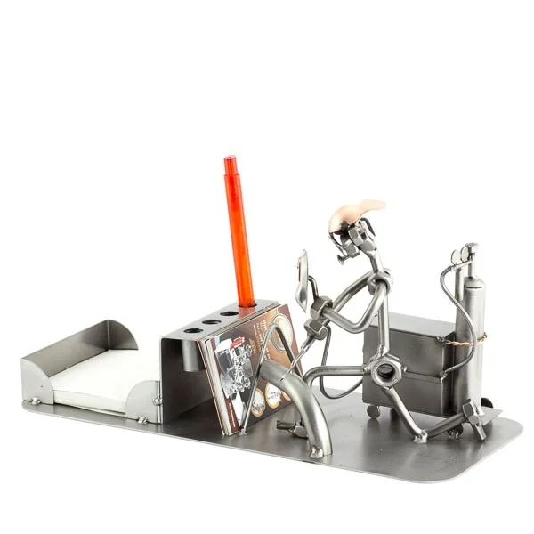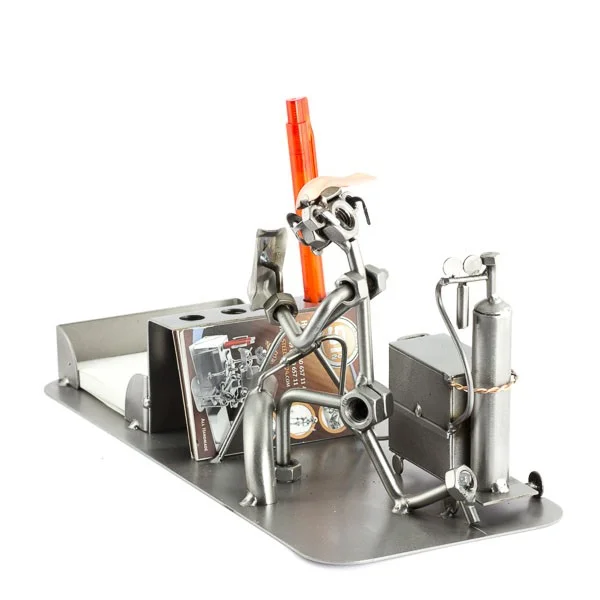 Lasser met papierbak / pennenstandaard en visitekaarthouder. Leuk om cadeau te geven bij de opening van een lasbedrijf.
