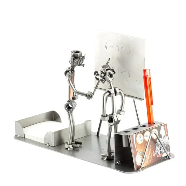 Leraar met leerling, met papierbak / pennenstandaard en visitekaarthouder. Deze mooie beroepenbeeldjes zullen zeker mooi staan, waar u ze ook neer zet. De ontvanger zal dit cadeau zeker waarderen.