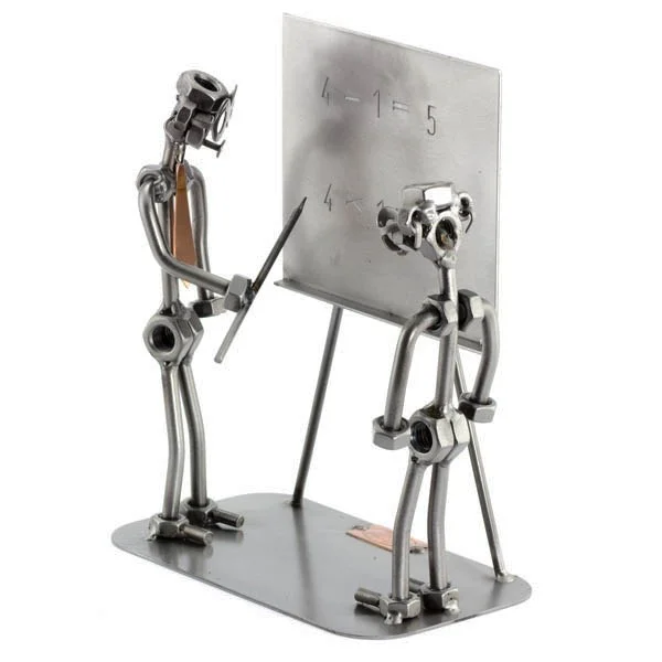 De onderwijzer staat met zijn leerling voor het schoolbord en legt een moeilijke som uit. Deze mooie beroepenbeeldjes zullen zeker mooi staan, waar u ze ook neer zet. De ontvanger zal dit cadeau zeker waarderen.
