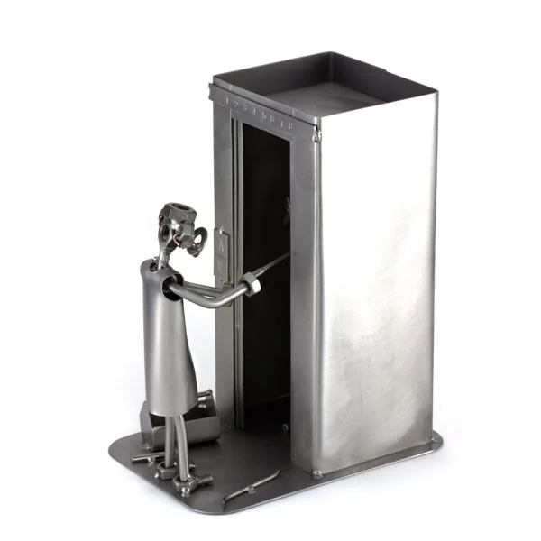 De metalen bouten en moeren beeldjes, ook wel moerenmannetjes genoemd, zijn gemaakt in originele Steelman24 kwaliteit, uitvoerig en zorgvuldig handgemaakt. Als gevolg van deze afwerking is elk afzonderlijk metalenbeeldje uniek en voldoet aan de hoogste kwaliteitsnormen. Hierdoor kunnen de beeldjes soms iets afwijken van de productfoto. Deze kleine stukjes van kunst die bestaan uit schroeven, moeren, bouten, metaal en koper worden geproduceerd met een hoog niveau van vakmanschap en een oog voor detail, in een intensief en ingewikkeld productieproces. Op hetzelfde moment zijn ze niet alleen gekenmerkt door hun buitengewone creativiteit, maar ook door unieke aandacht voor detail.