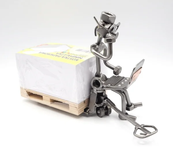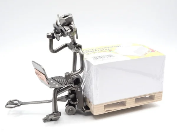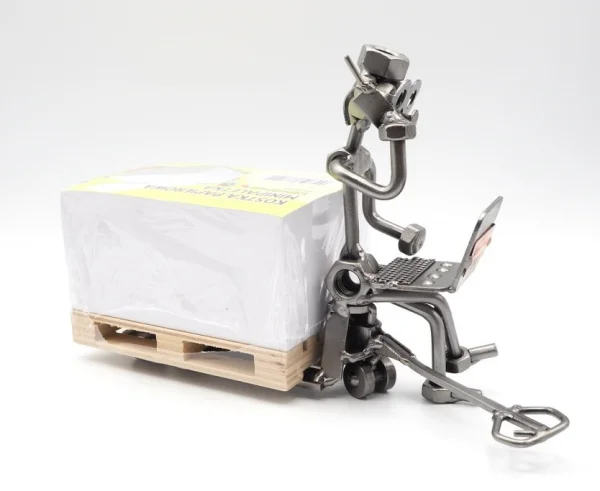 Bent u op zoek naar een origineel en praktisch geschenk? Onze handgemaakte metalen beeldjes van logistiek medewerkers combineren creativiteit en vakmanschap tot een uniek stuk decoratie. Dit beeldje toont een logistiek medewerker die via zijn laptop de juiste bestemming van een pallet met papier controleert, terwijl hij telefonisch overlegt met een collega. Een perfect cadeau voor de opening van een nieuw magazijn, logistiek centrum of expeditiecentrum, en een leuk aandenken voor expeditiemedewerkers.