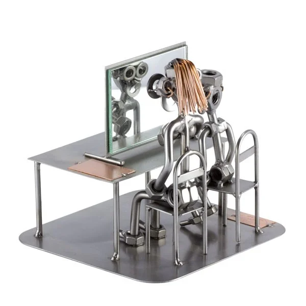 De metalen bouten en moeren beeldjes, ook wel moerenmannetjes genoemd, zijn gemaakt in originele Steelman24 kwaliteit, uitvoerig en zorgvuldig handgemaakt. Als gevolg van deze afwerking is elk afzonderlijk metalenbeeldje uniek en voldoet aan de hoogste kwaliteitsnormen. Hierdoor kunnen de beeldjes soms iets afwijken van de productfoto. Deze kleine stukjes van kunst die bestaan uit schroeven, moeren, bouten, metaal en koper worden geproduceerd met een hoog niveau van vakmanschap en een oog voor detail, in een intensief en ingewikkeld productieproces. Op hetzelfde moment zijn ze niet alleen gekenmerkt door hun buitengewone creativiteit, maar ook door unieke aandacht voor detail.