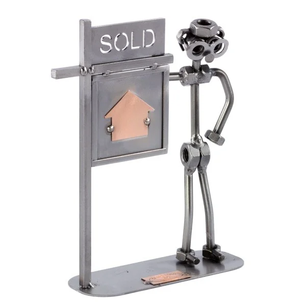 Zeer origineel cadeau om te geven bij de opening van een nieuw makelaarskantoor. Het metalenbeeldje wordt ook zeer gewaardeerd als cadeau bij een jubileum of pensionering. Maar ook als je eens een uniek verjaardagscadeau zoekt dan zal dit schroevenmannetje een blikvanger zijn op het feest.