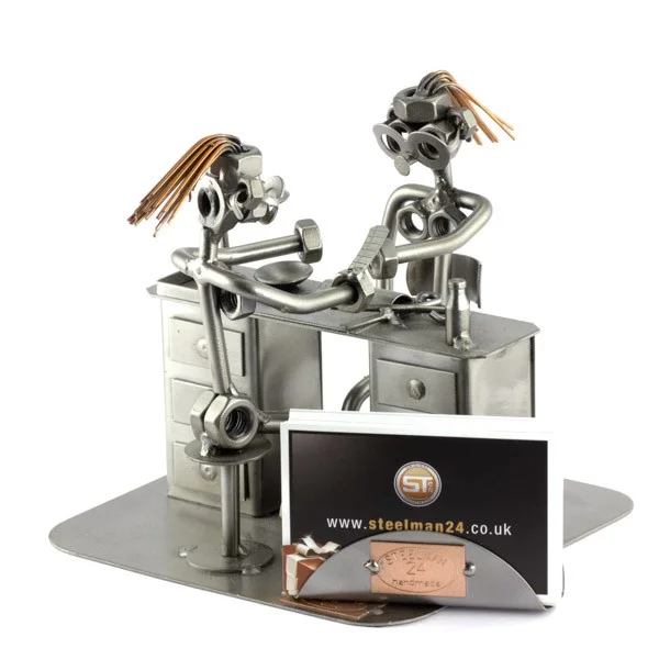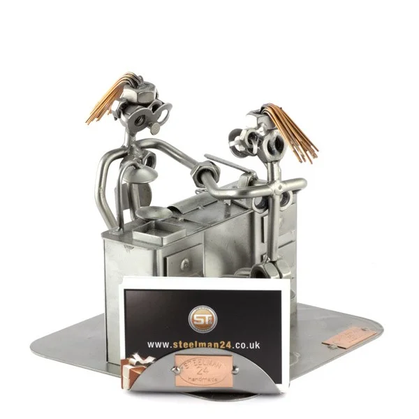 De metalen bouten en moeren beeldjes, ook wel moerenmannetjes genoemd, zijn gemaakt in originele Steelman24 kwaliteit, uitvoerig en zorgvuldig handgemaakt. Als gevolg van deze afwerking is elk afzonderlijk metalenbeeldje uniek en voldoet aan de hoogste kwaliteitsnormen. Hierdoor kunnen de beeldjes soms iets afwijken van de productfoto. Deze kleine stukjes van kunst die bestaan uit schroeven, moeren, bouten, metaal en koper worden geproduceerd met een hoog niveau van vakmanschap en een oog voor detail, in een intensief en ingewikkeld productieproces. Op hetzelfde moment zijn ze niet alleen gekenmerkt door hun buitengewone creativiteit, maar ook door unieke aandacht voor detail.