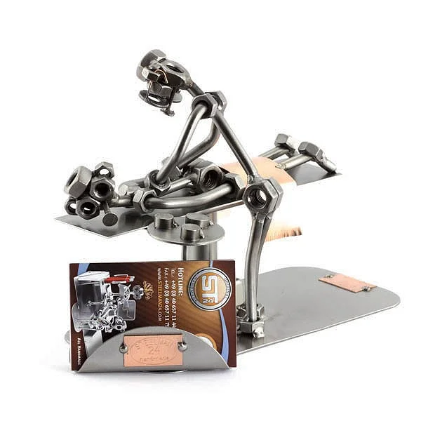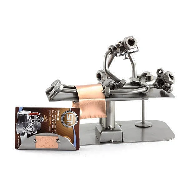 De metalen bouten en moeren beeldjes, ook wel moerenmannetjes genoemd, zijn gemaakt in originele Steelman24 kwaliteit, uitvoerig en zorgvuldig handgemaakt. Als gevolg van deze afwerking is elk afzonderlijk metalenbeeldje uniek en voldoet aan de hoogste kwaliteitsnormen. Hierdoor kunnen de beeldjes soms iets afwijken van de productfoto. Deze kleine stukjes van kunst die bestaan uit schroeven, moeren, bouten, metaal en koper worden geproduceerd met een hoog niveau van vakmanschap en een oog voor detail, in een intensief en ingewikkeld productieproces. Op hetzelfde moment zijn ze niet alleen gekenmerkt door hun buitengewone creativiteit, maar ook door unieke aandacht voor detail.